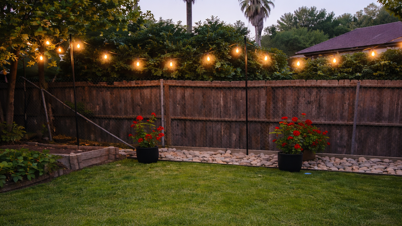 Backyard String Lights on Poles (Easy Outdoor Lighting Setup)