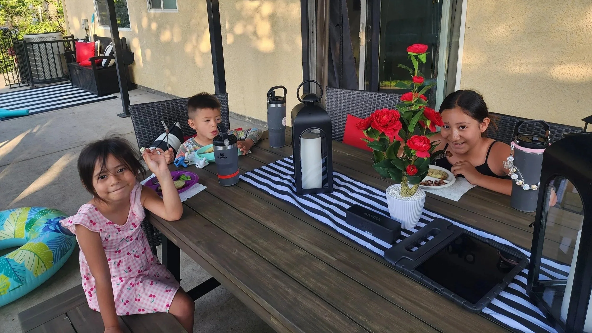 This is what it’s all about—simple dinners, kids at the table, and everyday moments happening right in our backyard.